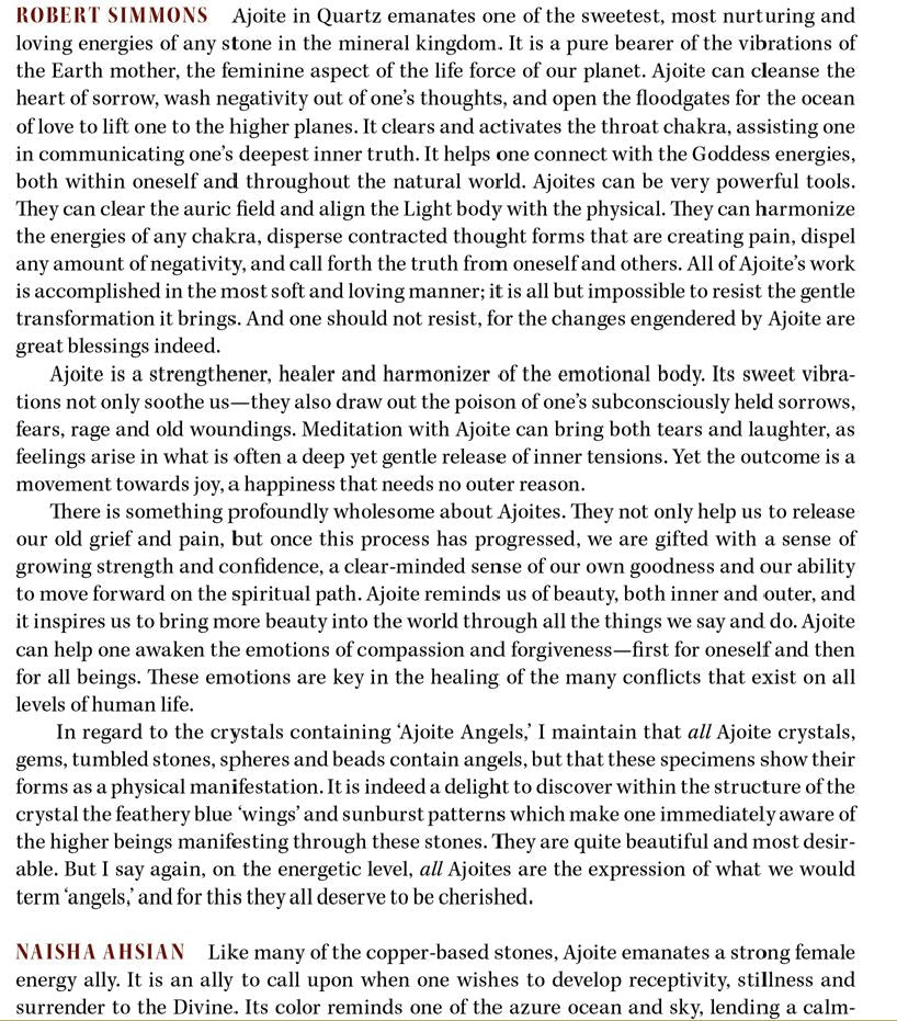 It is a master healer and medium for access to Higher realms. Ajoite can clear the auric field and align the Light body with the physical.