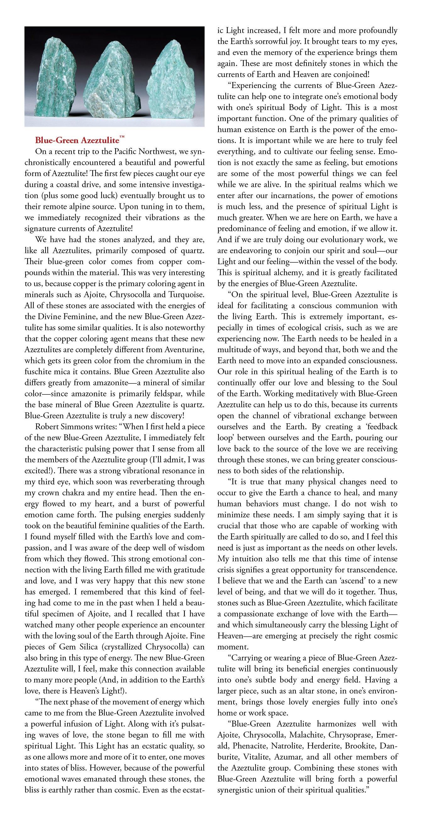Robert Simmons writes: “Azozeo Super Activated Crystals act as powerful conduits to bring through the flood of Celestial Fire—the Nameless Light of the Great Central Sun which has now begun to bathe the Earth. Like a tide coming in, this energy is destined to uplift all of humanity and earth to a new level of being. As we stand here at the beginning of this new era, the Azozeo Crystals function as ‘grounding wires’ through which the initial surges of Divine currents can pass. We are urged to work with these stones and allow ourselves to be pillars of light, acting to conduct Celestial Fire into the world through our own being. We can do this through meditation with these stones, through utilizing them in energy grids and healing layouts, through wearing them or through planting them ritually in the Earth.