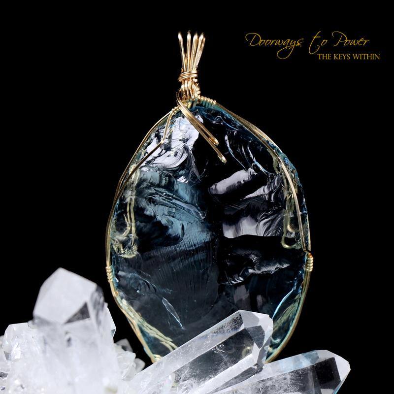 7th Density Blue Prism of Lyra Andara Monatomic Crystal Pendant in14k.