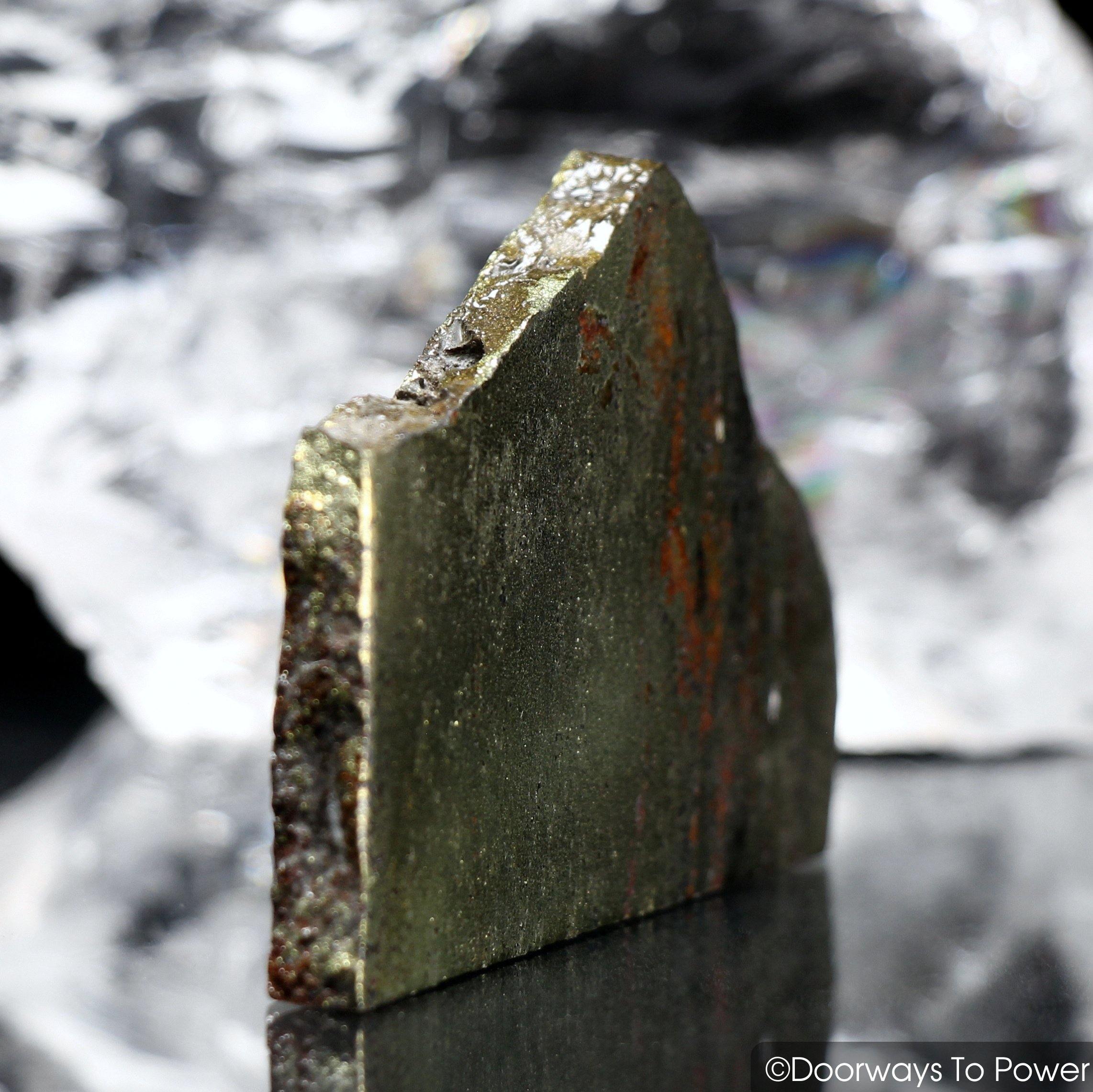 Healers Gold Polished Slice. A combination of Pyrite and Magnetite which can be highly efficient at beating that drained feeling one gets often after doing a healing.