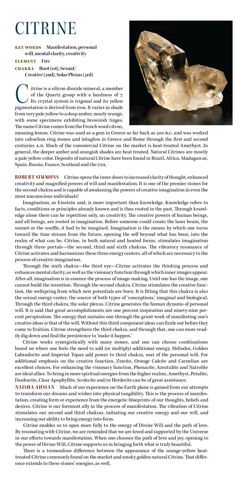 Most often associated with the Root, Sacral, and Solar Plexus Chakras, Citrine can also be used to cleanse all of the Chakras. Sunny Citrine has a joyful vibration that transmits outward to those nearby, making these crystals ideal for any setting. Working with Citrine can help one to overcome depression, release anger, and learn effective communication skills. Citrine can activate one's imagination, bringing more creative visions to a clearer mind. It can enhance one's optimism in any situation, bringing a more positive outlook into the conscious and subconscious mind, which allows one to step into the flow of things with better results. Citrine is often credited with attracting synchronicity by opening the mind to new ideas, discerning which are most likely to succeed, allowing those to develop, and following through with them to their happy conclusion.