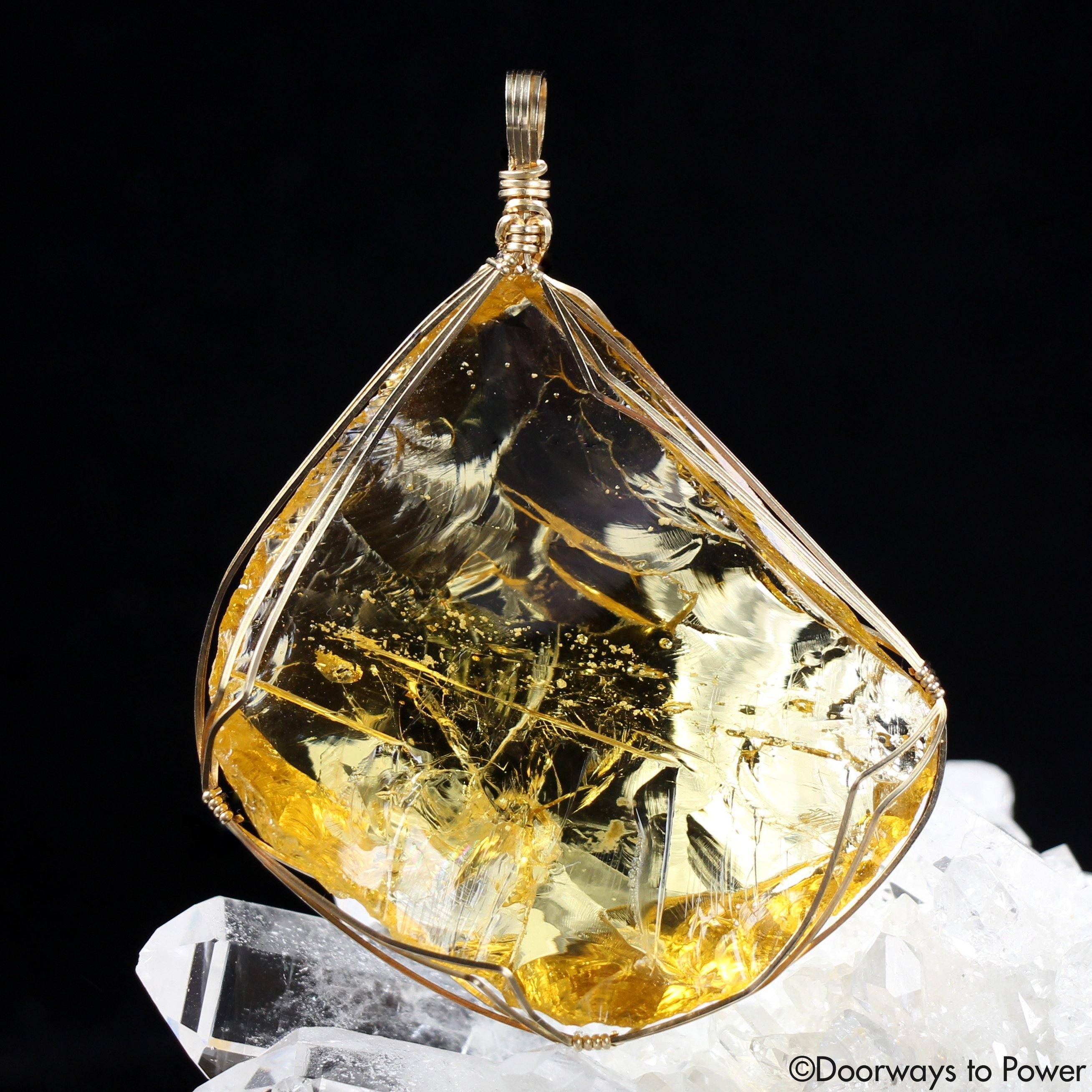 A+++ Lemurian Amber Andara 14k Gold Crystal Pendant.