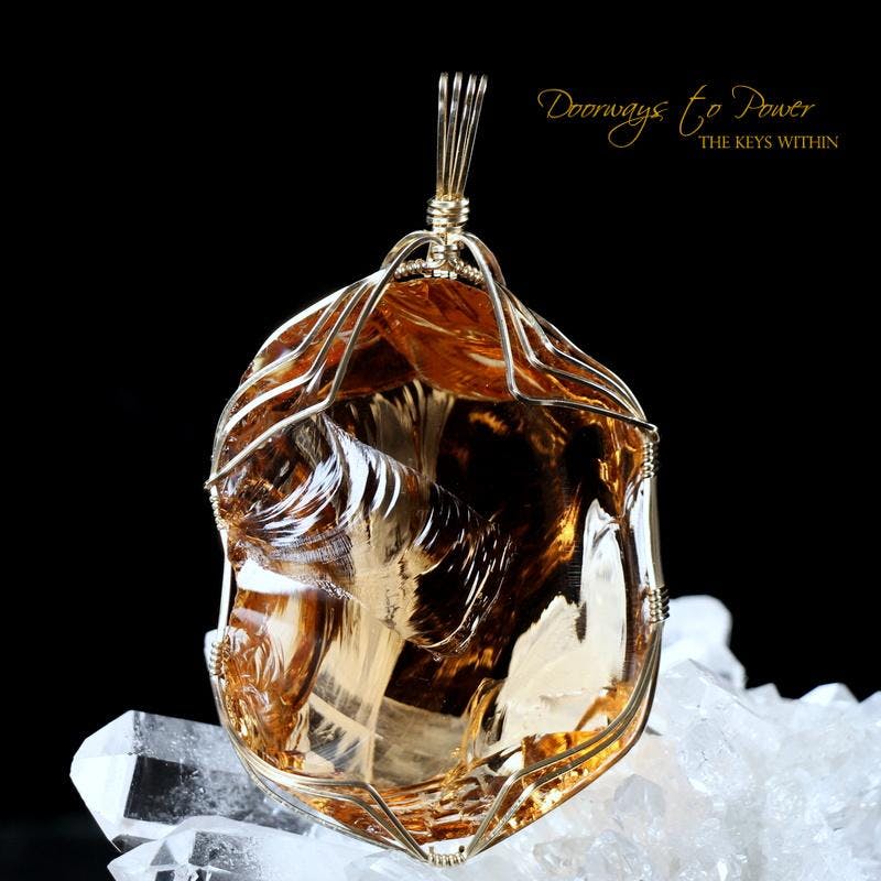 Powerful & Authentic Lemurian Etherium Gold Monatomic Andara Crystal Pendant set in 14k Gold.