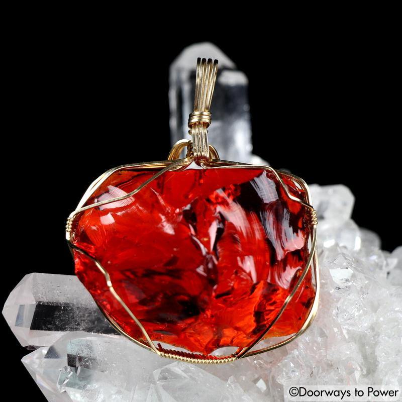 Incredible Lemurian Sunrise Monatomic Andara 14k Gold Crystal Pendant