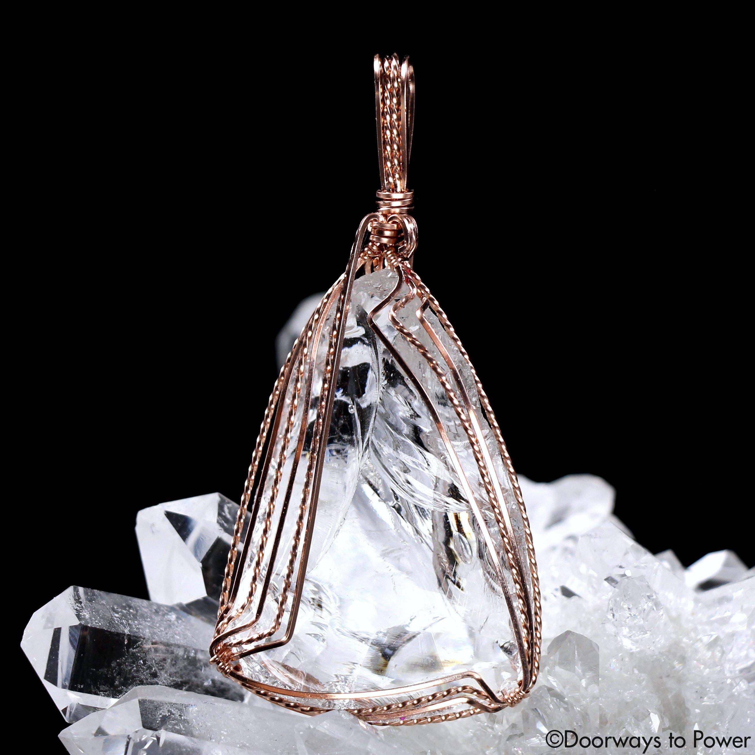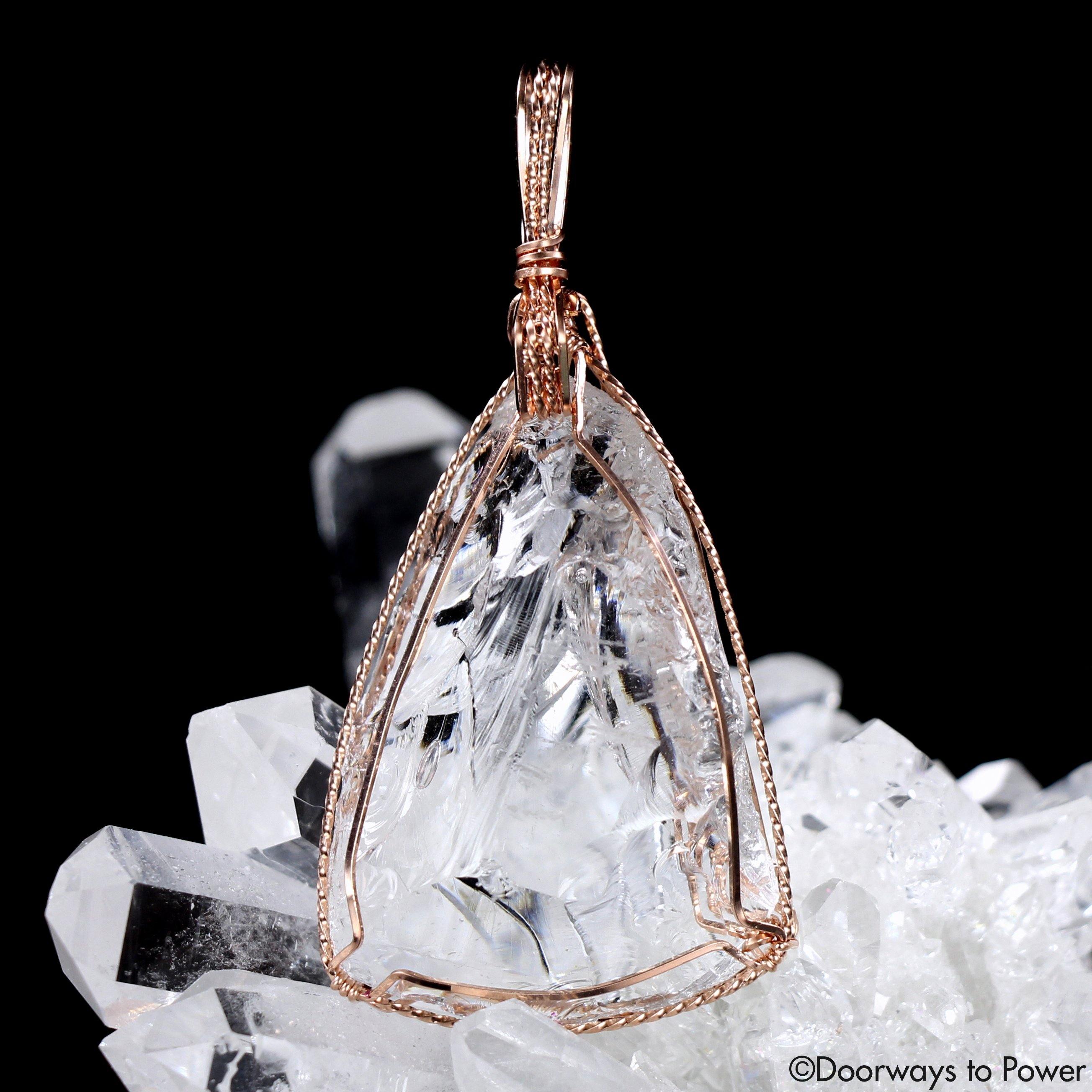 Beautiful Luminescent Diamond Light Andara Crystal Pendant set in Rose Gold.
