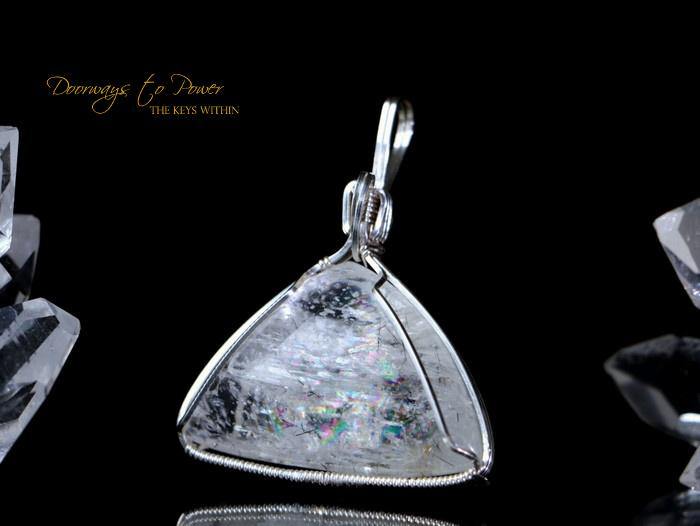 Stunning Petalite crystal pendant with rainbows wrapped in sterling silver.
