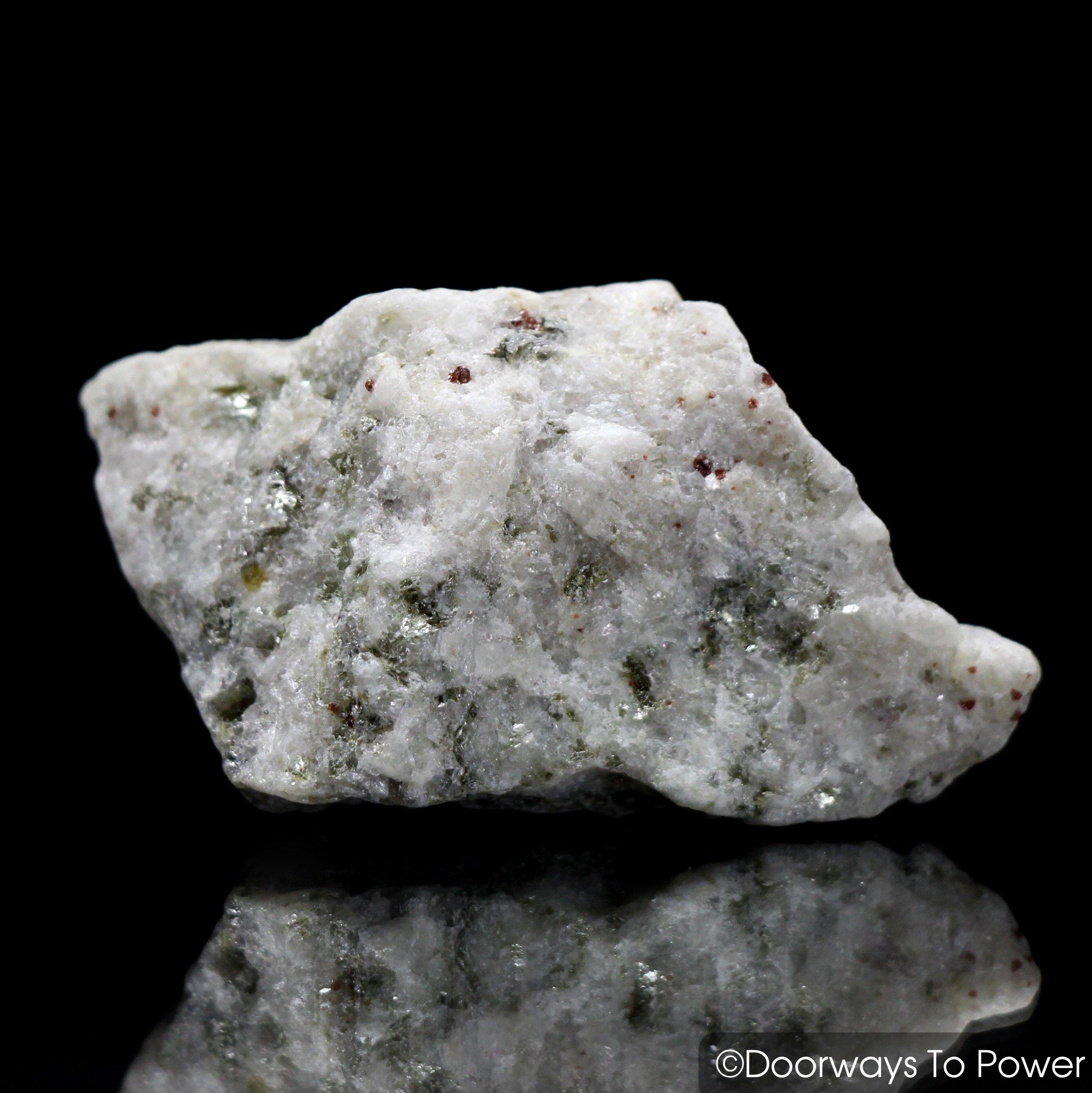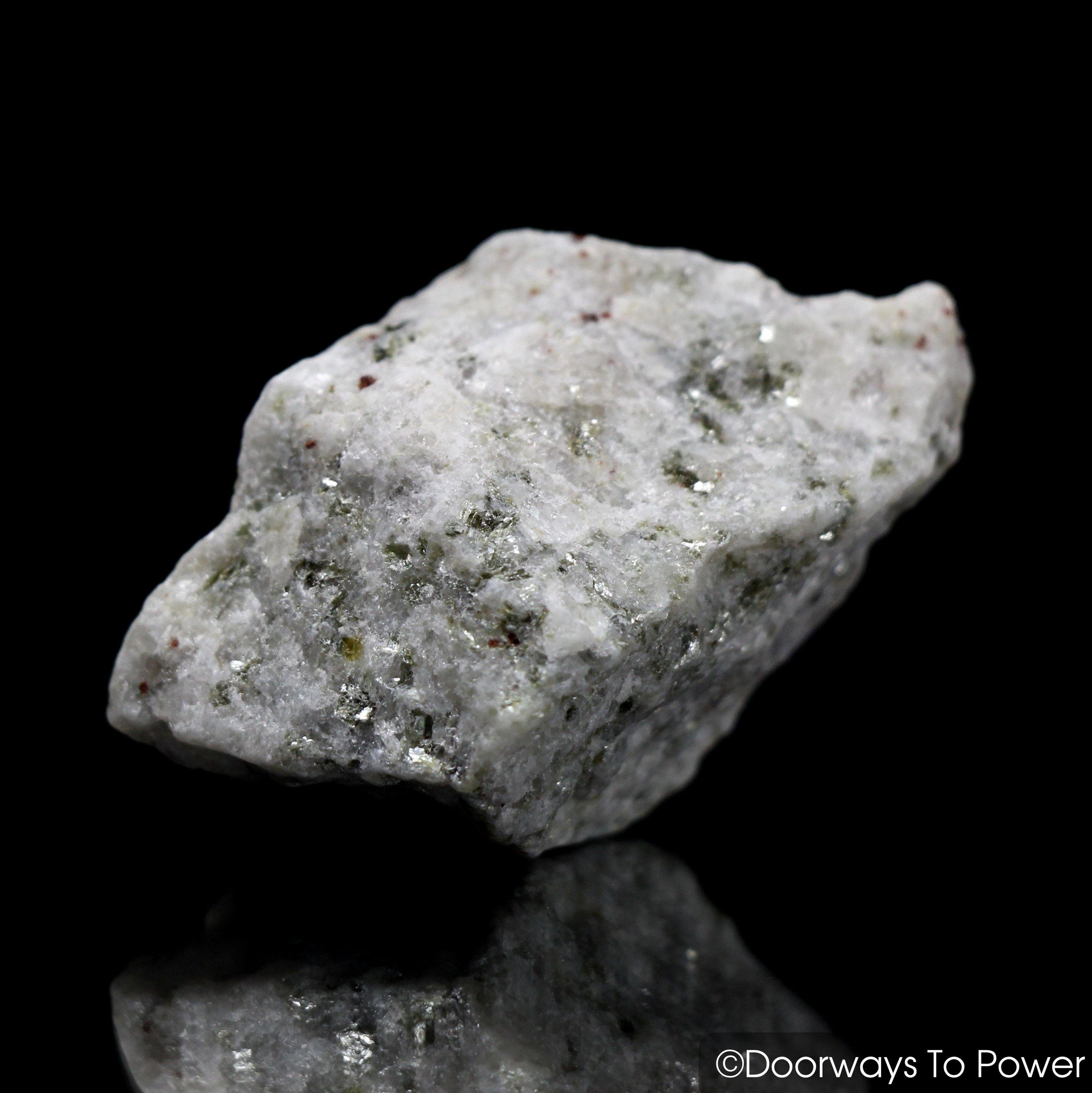 "Sanda Rosa Azeztulite, perhaps because of its mica and garnet inclusions, is more grounded than other forms of Azeztulite, and is therefore easier for some highly sensitive people to work with."