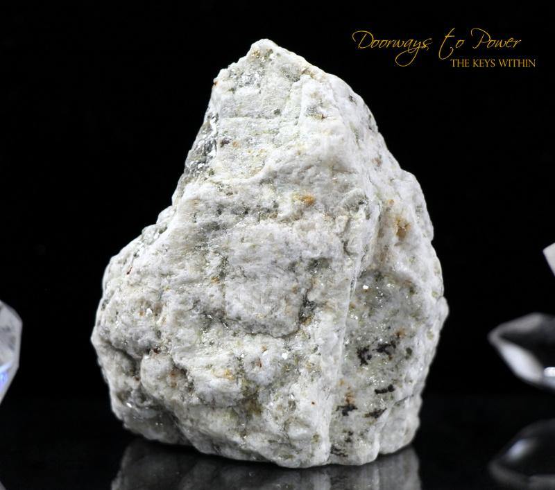 "Sanda Rosa Azeztulite, perhaps because of its mica and garnet inclusions, is more grounded than other forms of Azeztulite, and is therefore easier for some highly sensitive people to work with."