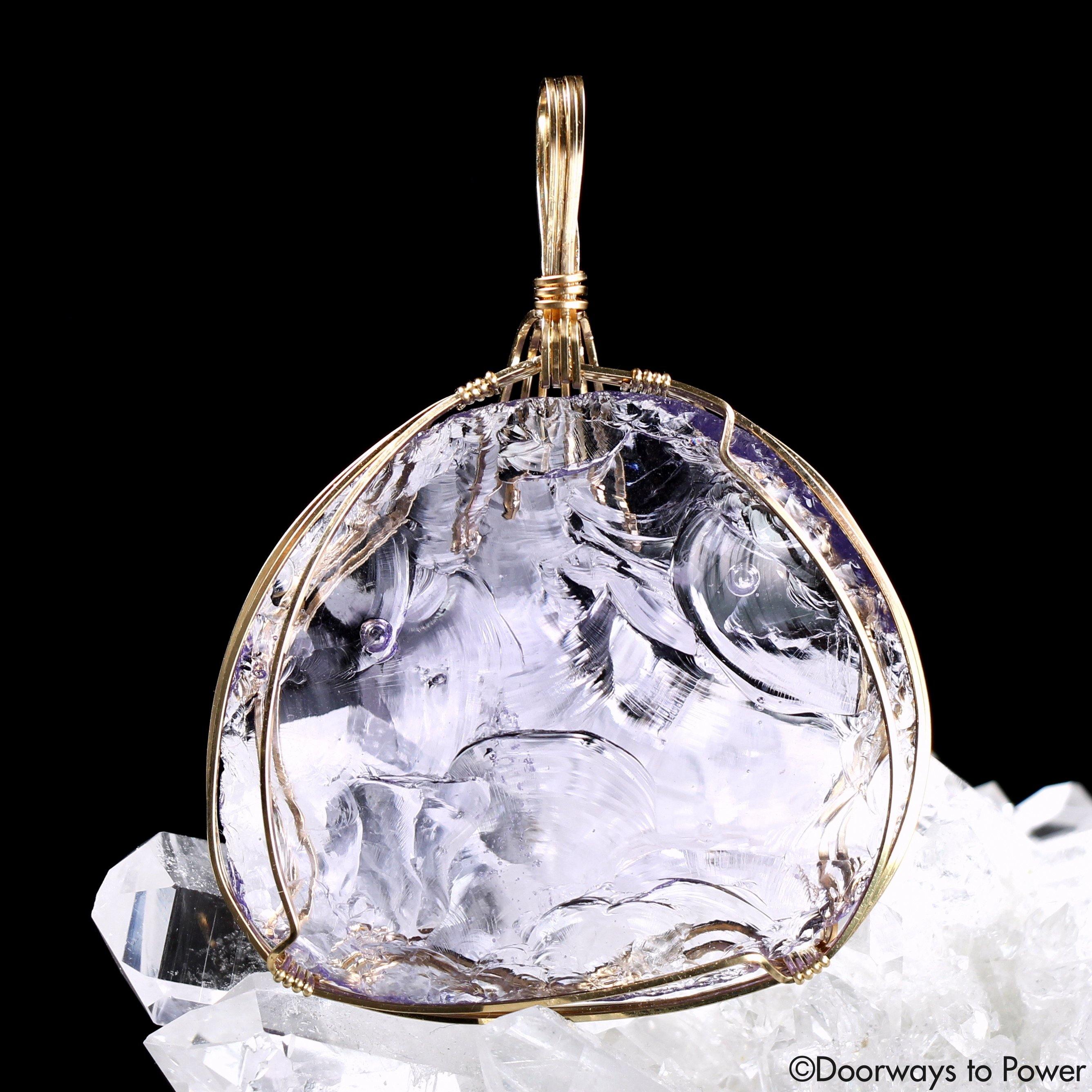 Sovereign Amethyst Monatomic Andara Crystal Pendant 14k Gold, Mt. Shasta “SAHASRARA”