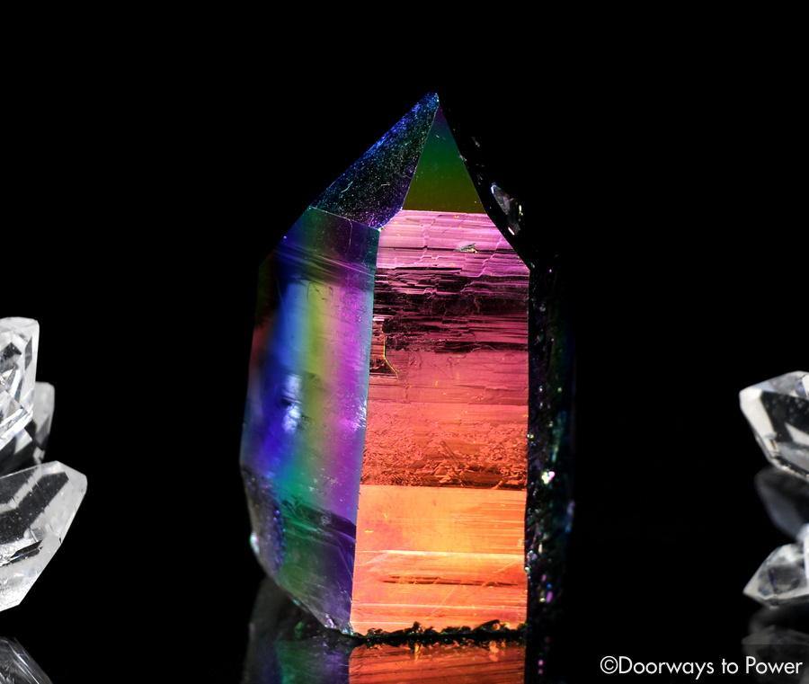 Amazing Titanium Aura Lemurian Quartz Crystal Point An excellent stone for creativity, both removing blockages to creativity and enhancing creative powers. An intensely visual stone, promoting clairvoyance and all forms of "seeing". They are used in meditation and yogic practice, where it appears to stimulate the upward movement of the kundalini. Carrying the mineral is said to assist in "reading" people."